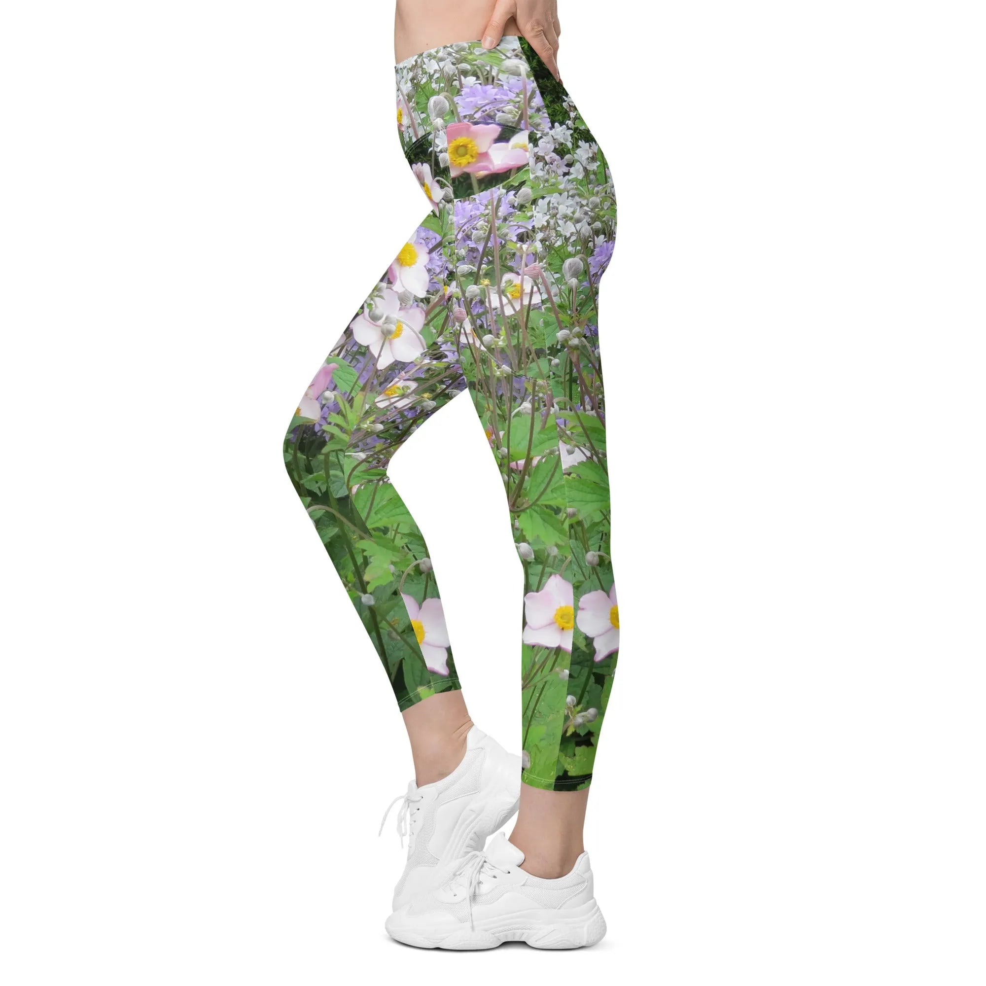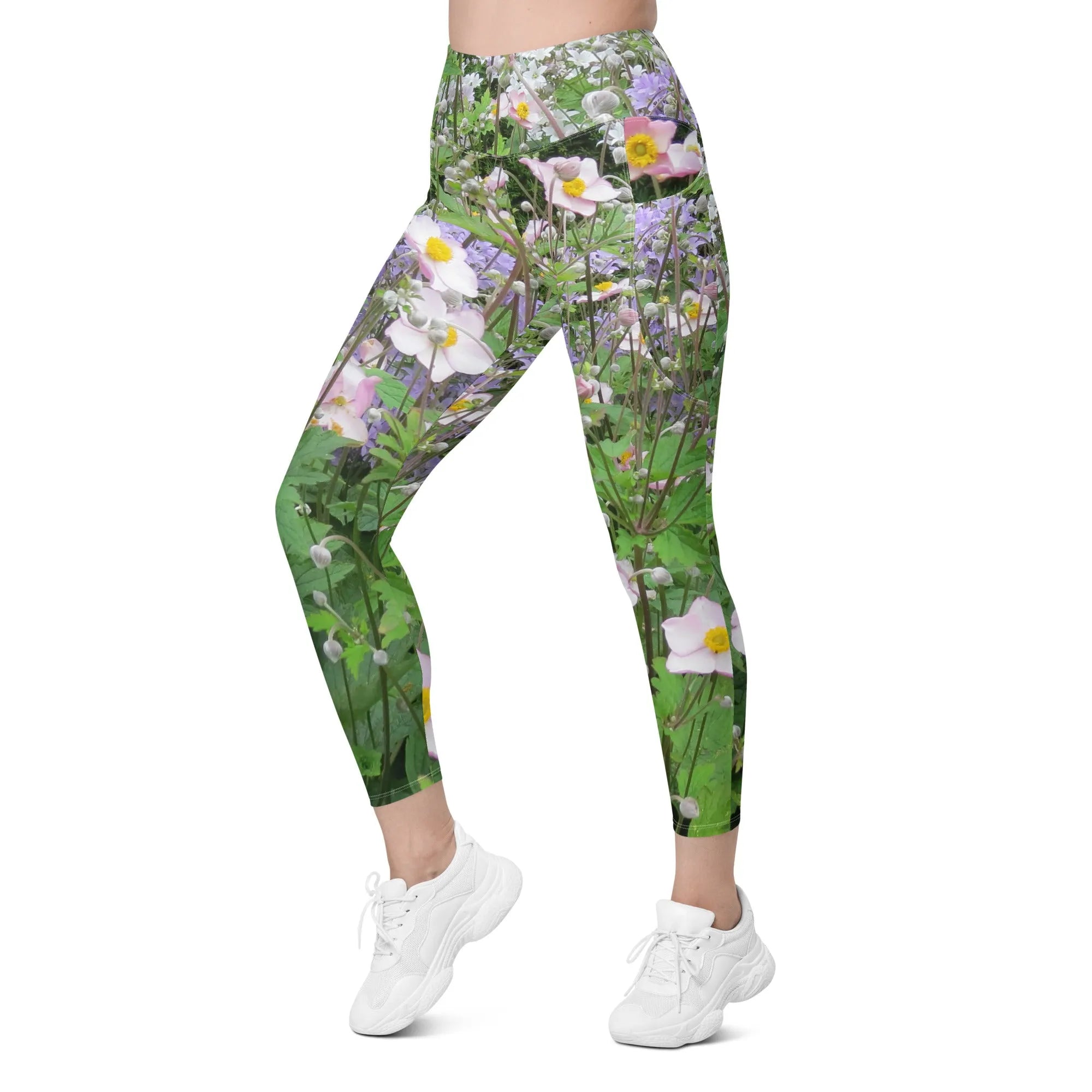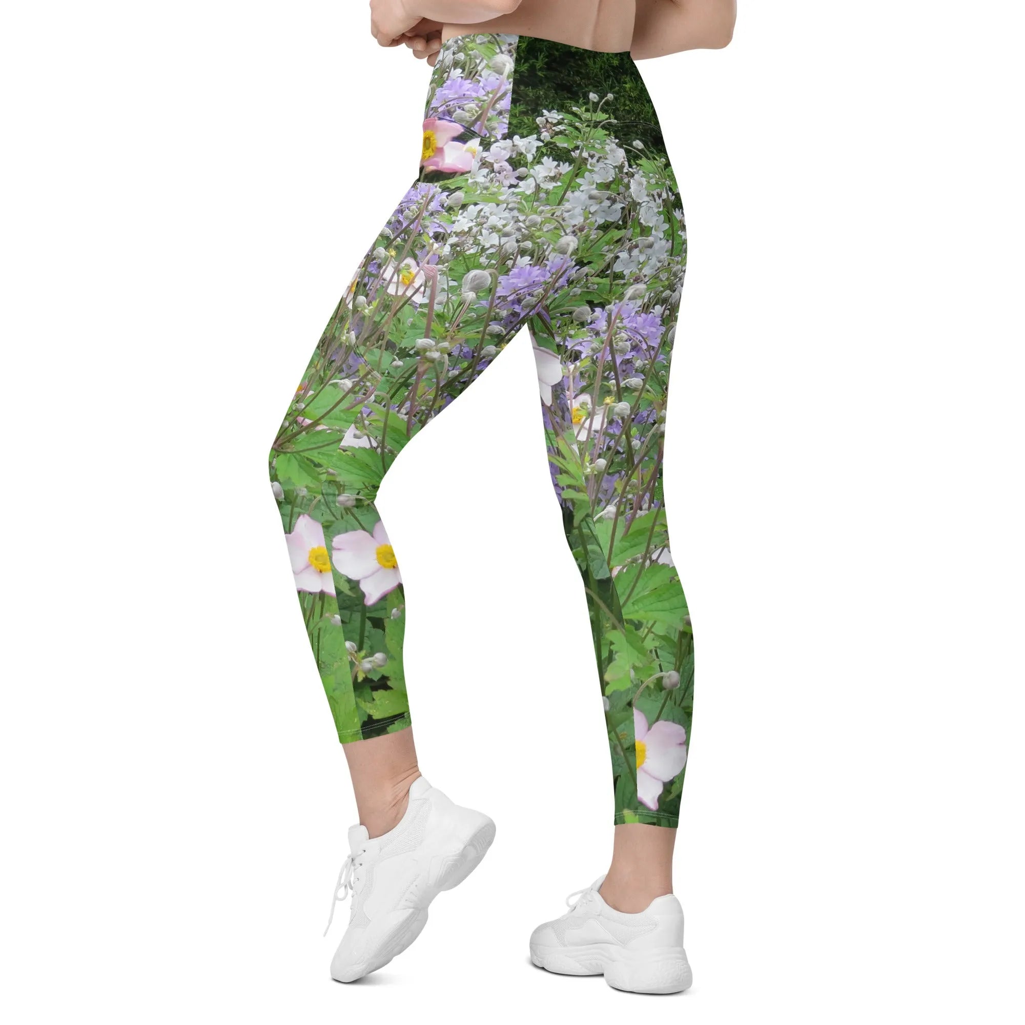 Nature: Historic Scottish Highland Castle Garden Flowers Leggings Straight Waist with Pockets