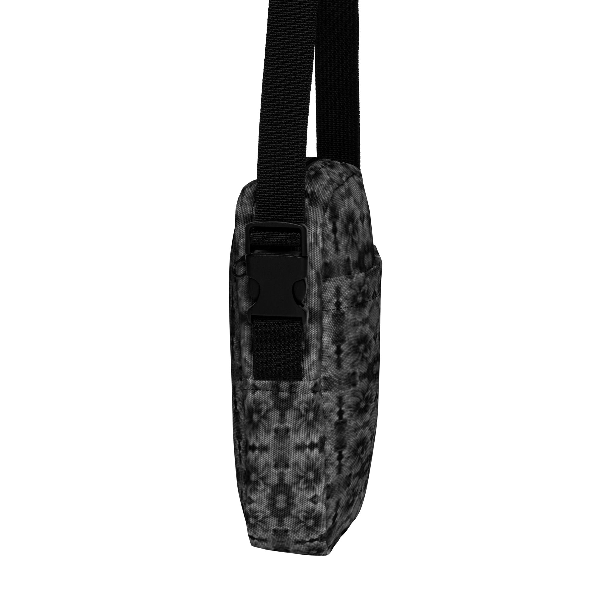A compact essential with a touch of botanical artistry. This crossbody convertible bag features the Victoria Island Monochrome Charm dahlia artwork—created from a close-up dahlia photographed in the gardens of the Fairmont Empress in Victoria, Canada and transformed into a soft, tonal black-and-white pattern.