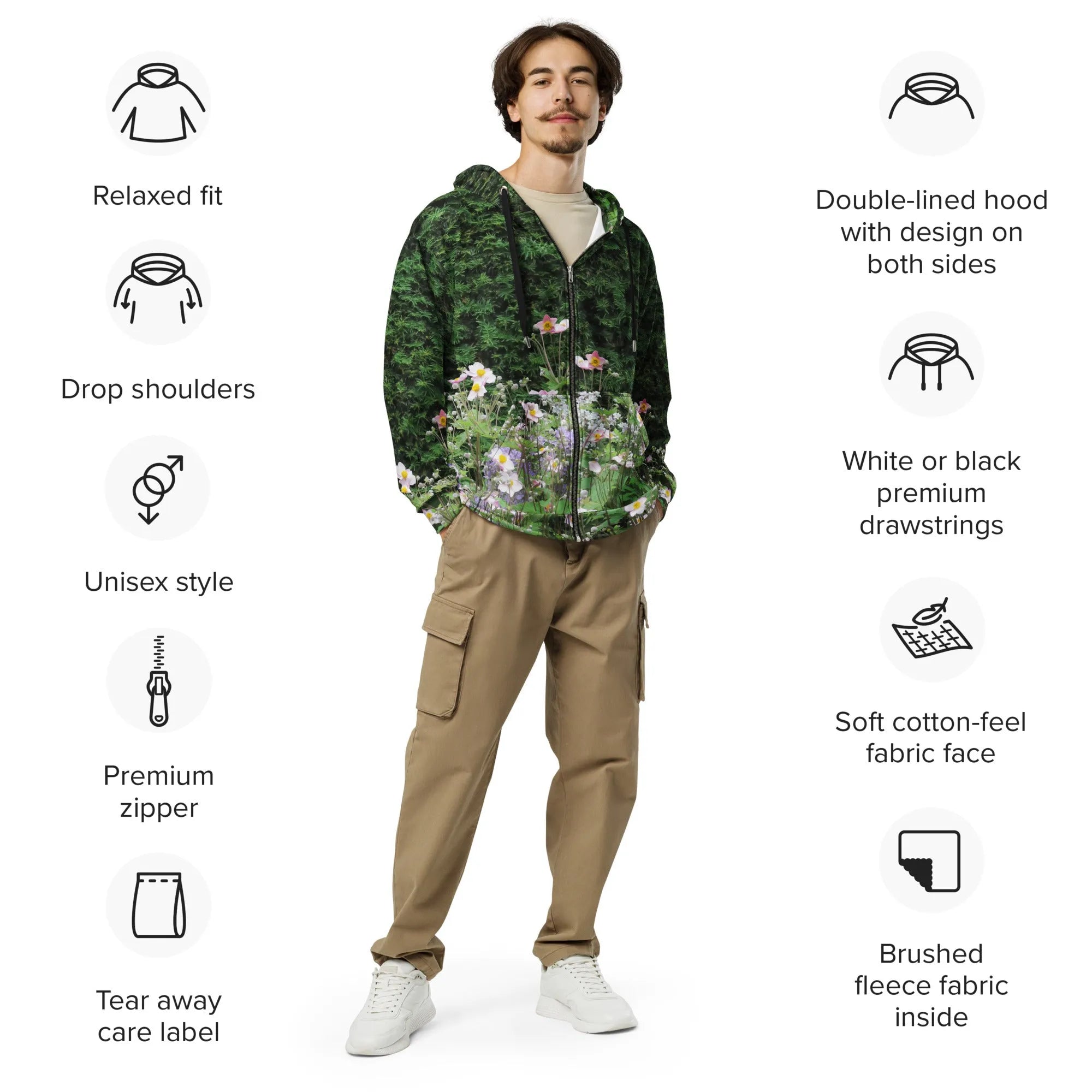 Vibe: Historic Scottish Highland Castle Garden Hedge and Flowers Unisex Zip Hoodie