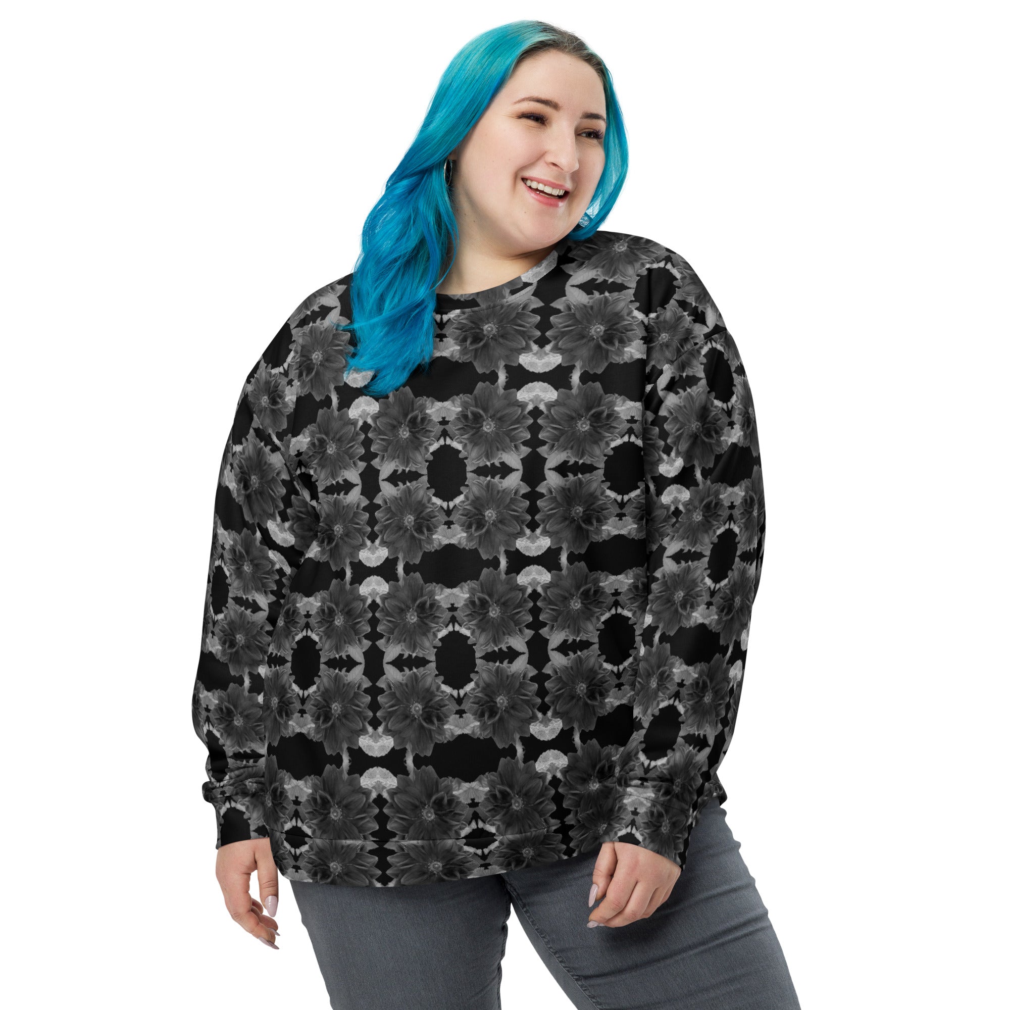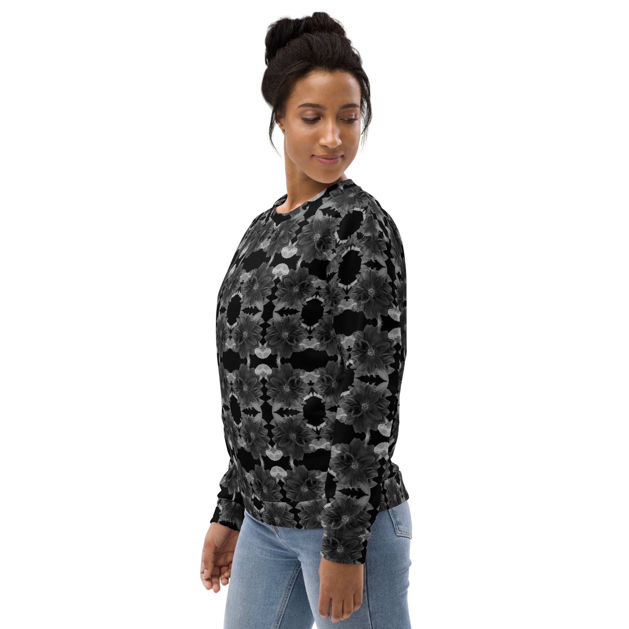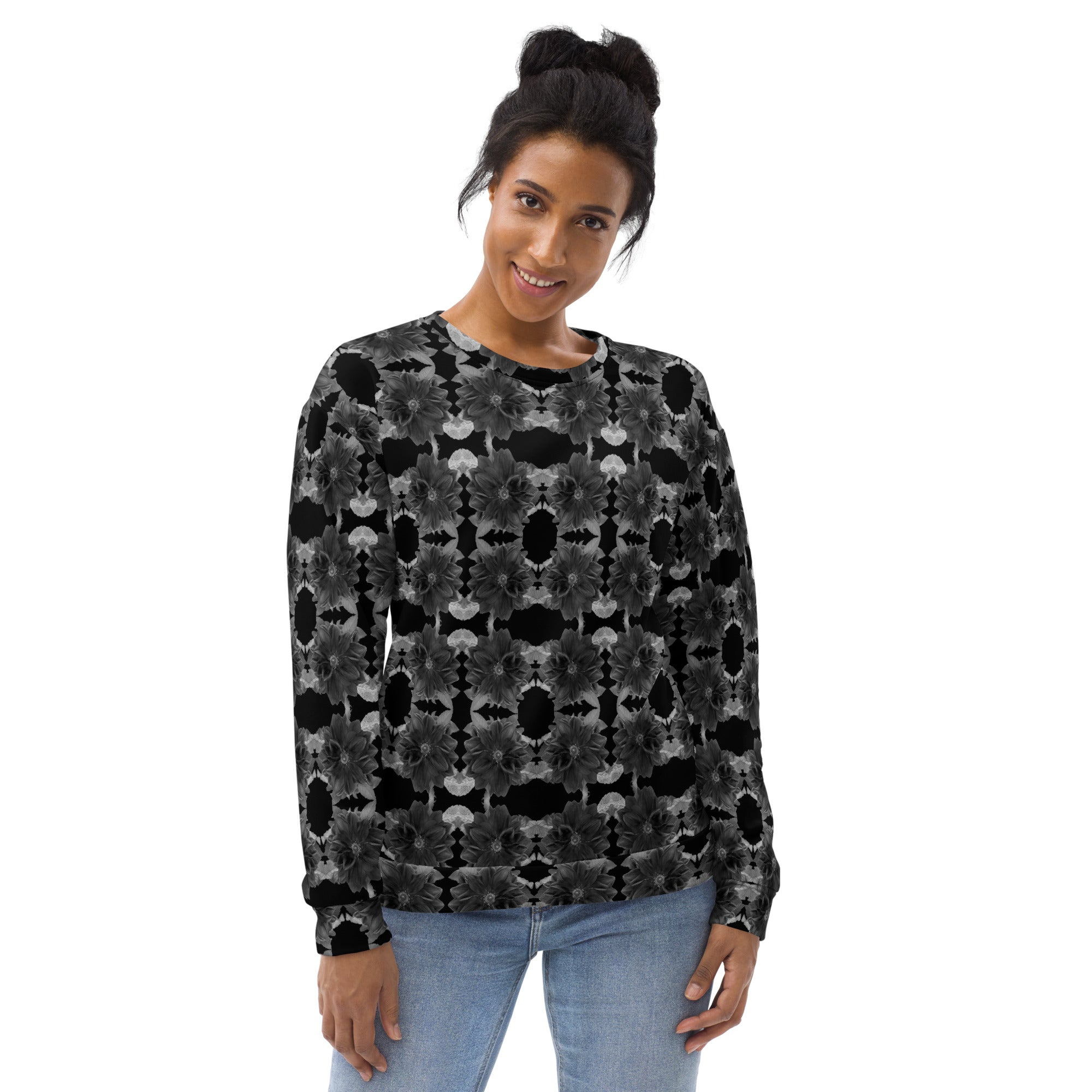 Sweatshirt – Victoria Island Dahlia Monochrome Charm (Unisex Crew Pullover)